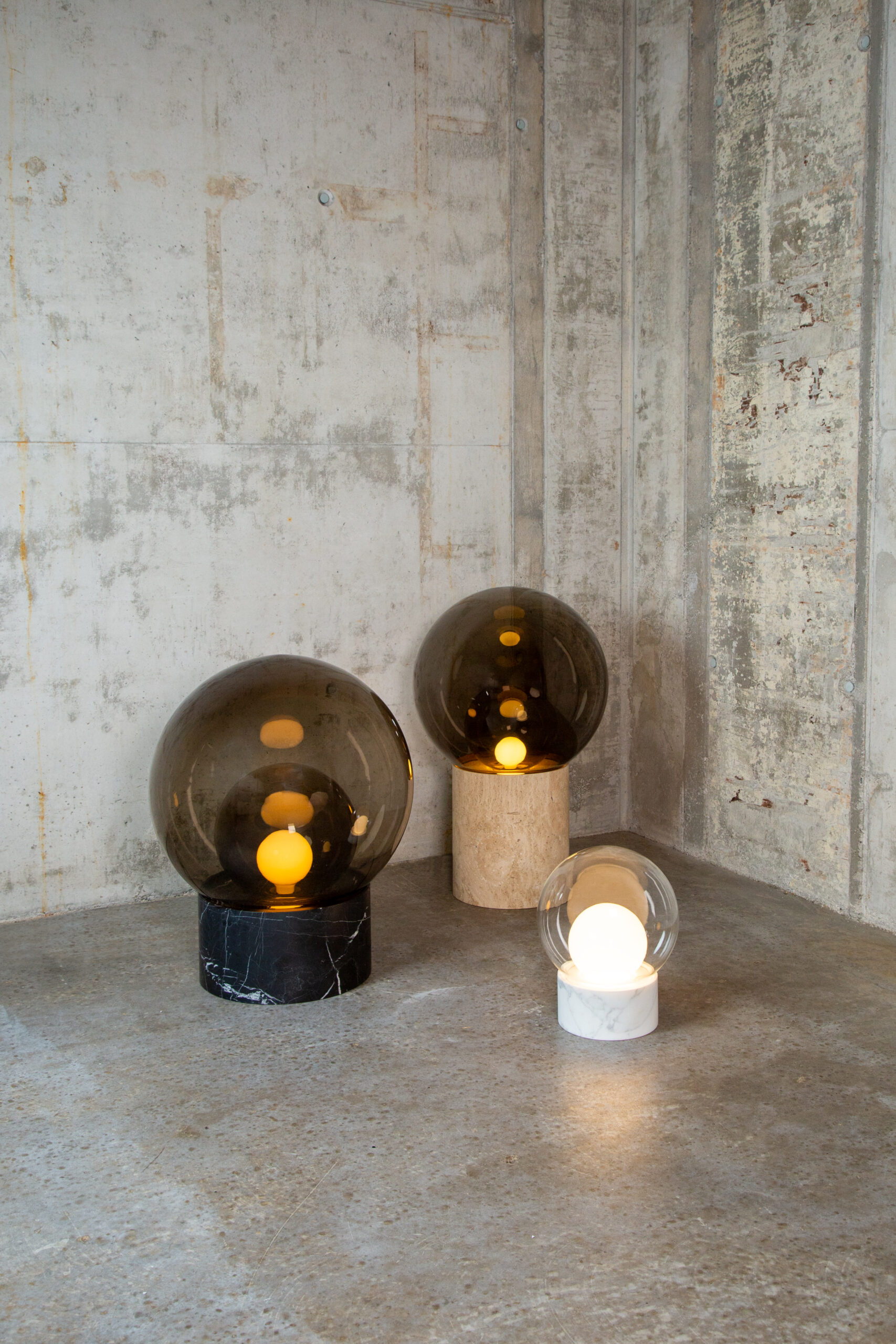 BOULE takes its name from the French word for “ball” and rightfully so. The lamp’s most captivating feature is its perfectly rounded form. The combination of a hand-blown glass globe with a ceramic or metal base creates a minimalist yet eye-catching design.